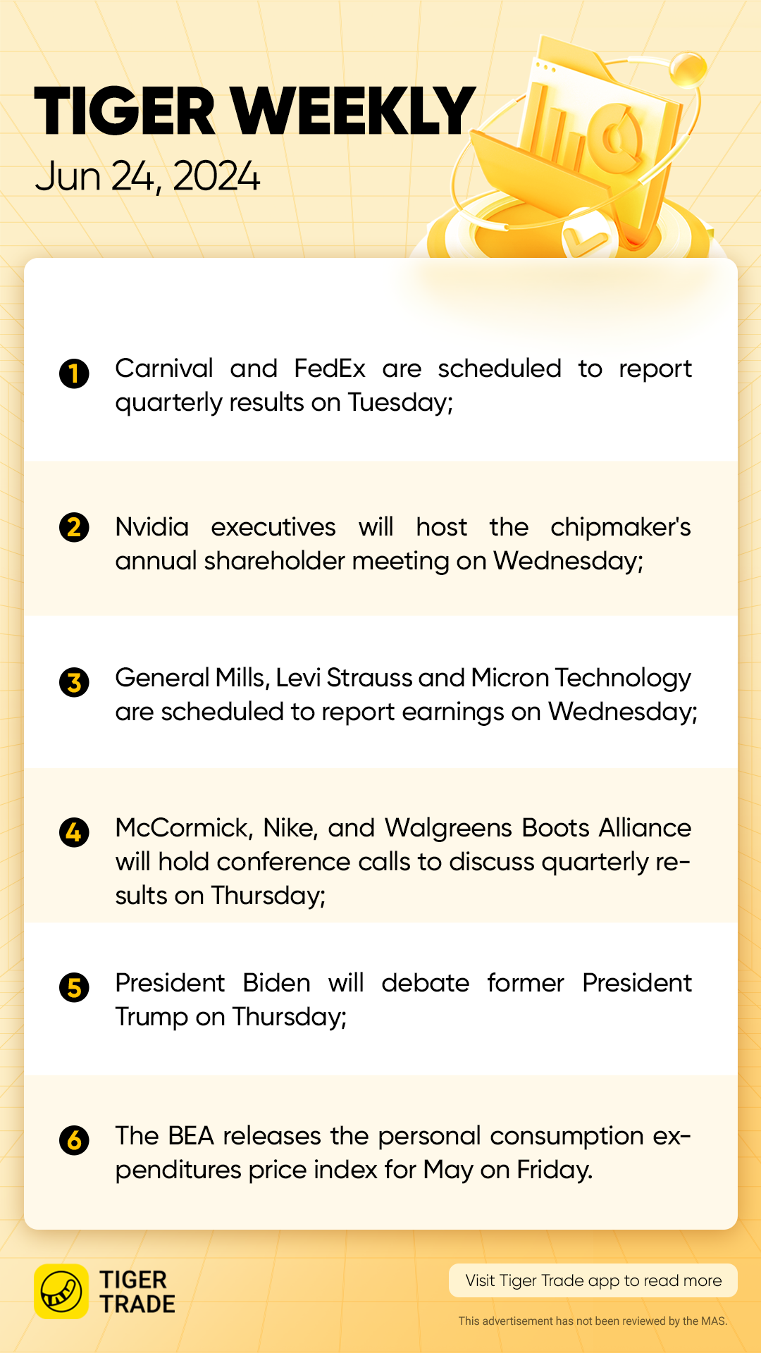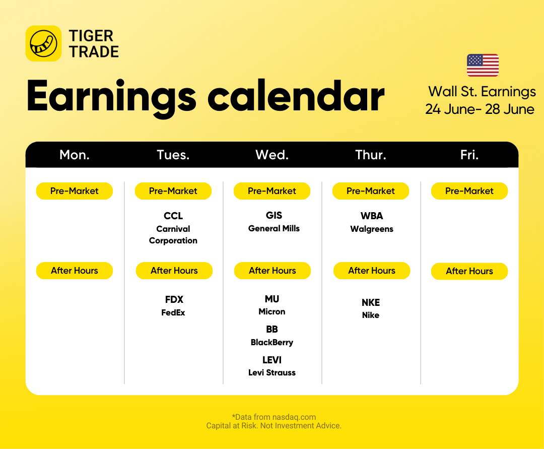 Carnival and FedEx release results on Tuesday, followed by Micron Technology and General Mills on Wednesday. Nike, McCormick, and Walgreens Boots Alliance report on Thursday.