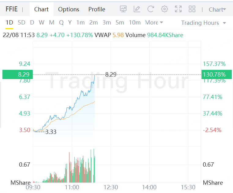 Shares of Faraday Future, which completed a reverse stock split Friday, were up 130.78% on Thursday.