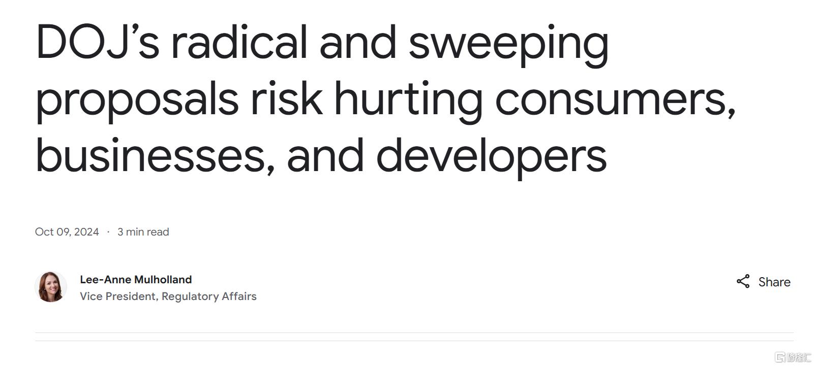 针对周二的文件,谷歌方面批评美国司法部的建议“过于激进”。