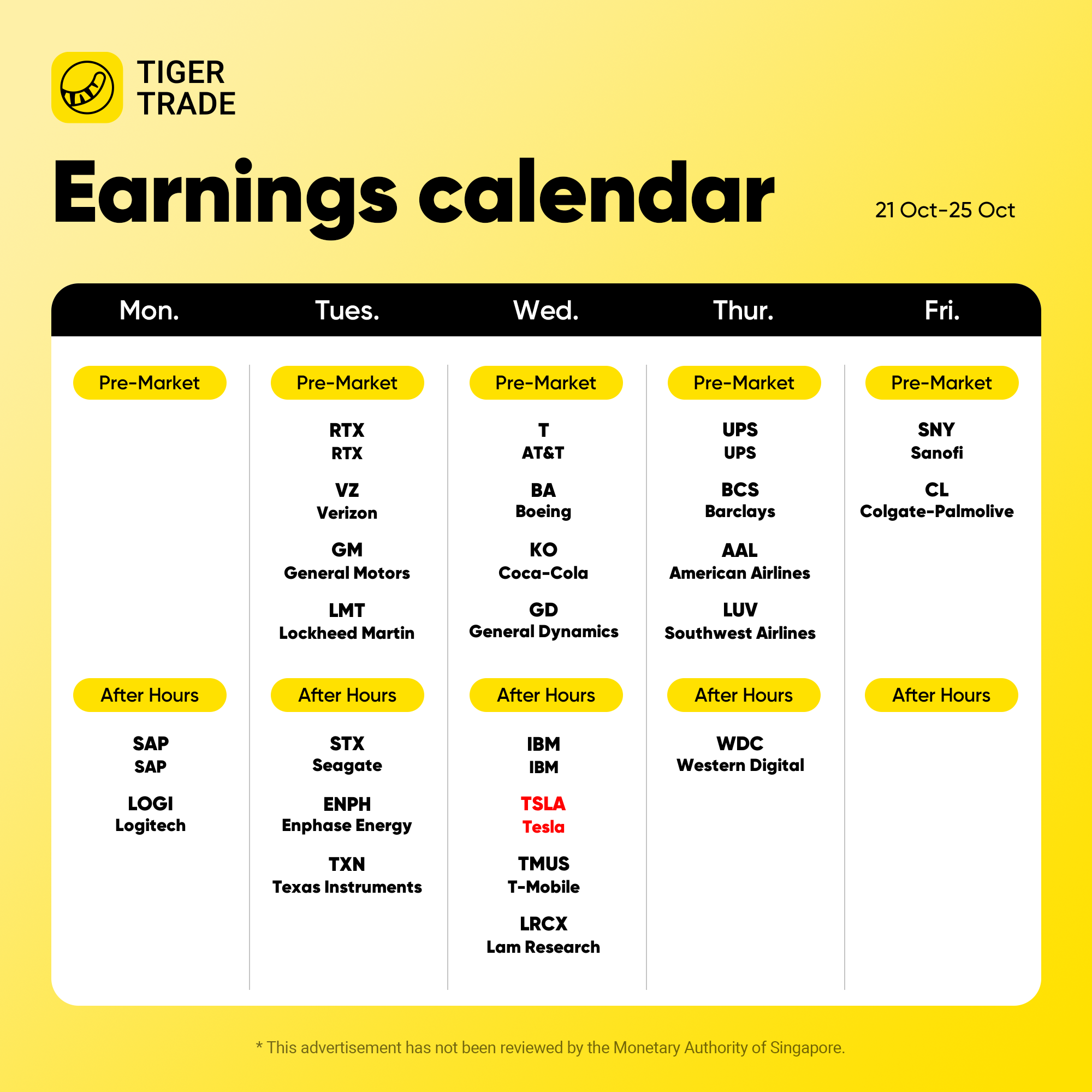 Nucor and SAP will be the earnings highlights on Monday, followed by 3M, General Motors, Lockheed Martin, and Verizon Communications on Tuesday. On Wednesday, AT&T, Coca-Cola, Newmont, NextEra Energy, Tesla, and T-Mobile US publish quarterly results.