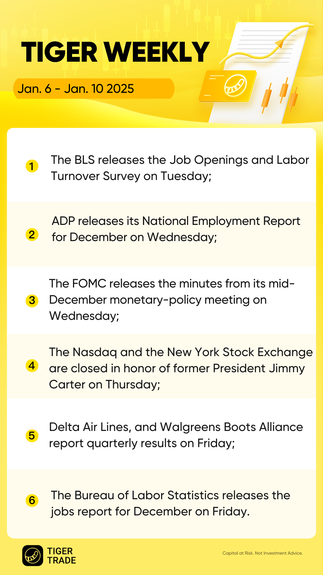 It will be the third consecutive shortened trading week, as the stock market will be closed Thursday for a national day of mourning for former President Jimmy Carter, who passed away late last year. Stocks will be looking to bounce back from a less than merry performance during what's known as the Santa Claus Rally period, seven trading sessions during which the S&P 500 has gained an average of 1.3% since 1950. This time around, the S&P 500 slid 0.5%.