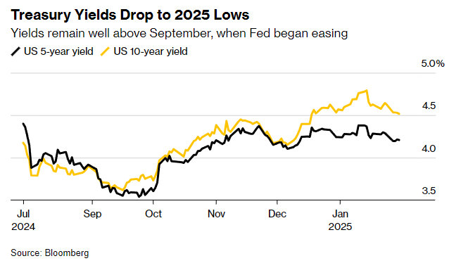 由于通胀数据低于预期,美国国债在年初勉强上涨。但固定收益交易员现在需要在市场风险上升与关税导致的通胀后果以及特朗普限制移民和对宽松财政政策的偏好之间进行权衡。