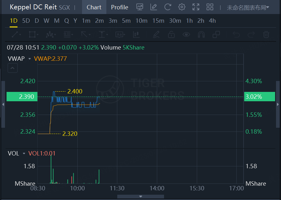 Keppel DC Reit jumps 3.02 % at 10:51 am, July 28th.