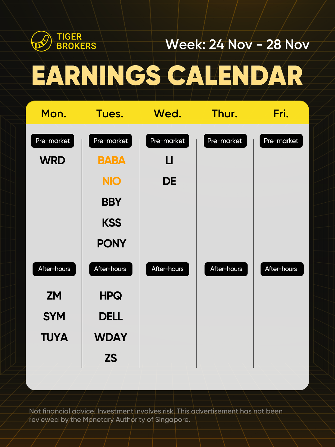 Alibaba Group Holding, Analog Devices, Autodesk, Best Buy, Burlington Stores, Dick's Sporting Goods, Dell, HP Inc., J.M. Smucker, NetApp, Nutanix, Urban Outfitters, Workday, and Zscaler release earnings.
