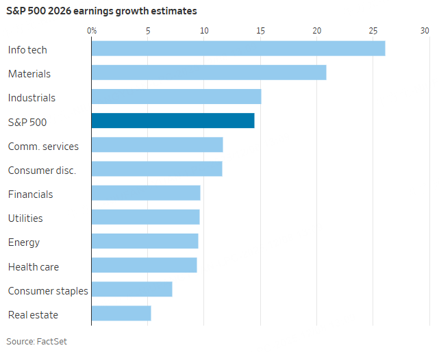 All of that should be good for companies' bottom lines. Analysts expect 2026 to be another great year for tech companies in particular, even as they spend huge sums on AI infrastructure.