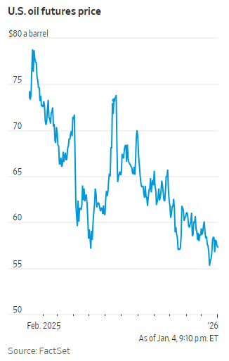 Oil futures fell Sunday night to start the first trading session since the U.S. ousted Venezuelan strongman Nicolás Maduro and President Trump subsequently pledged to dispatch American drillers to revive the country's crude output.