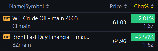 Brent crude futures for March rose $1.62, or 2.56%, to $64.96 a barrel. U.S. West Texas Intermediate crude was up $1.67, or 2.81%, at $61.03.