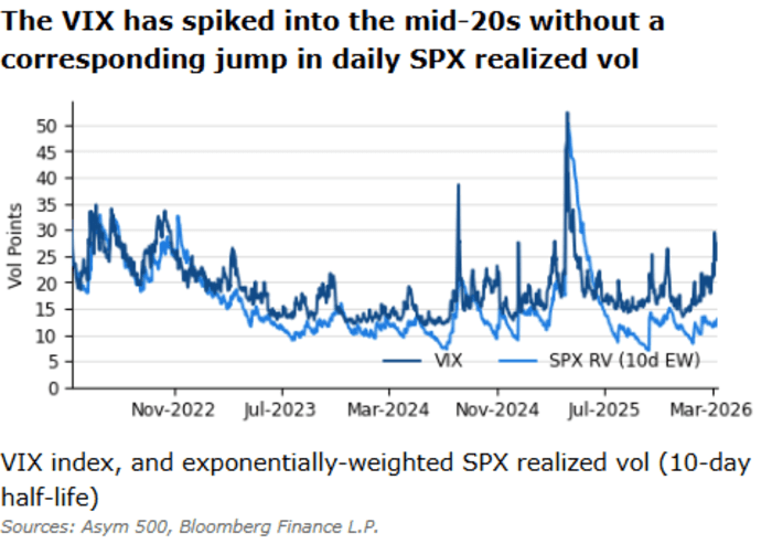 The level of the VIX is driven by trading in S&P 500 options contracts. A higher VIX can mean more investors are seeking out protection against a market crash.
