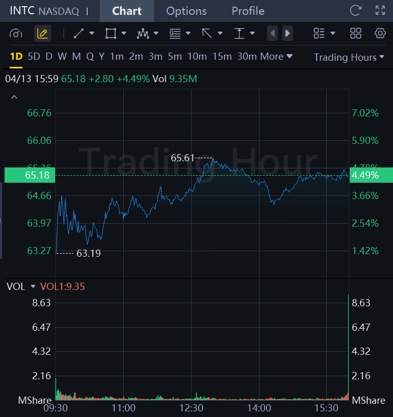 The chip maker's stock $(INTC)$ closed up 4.5% on Monday, marking its ninth consecutive day in the green, and its best nine-day stretch on record, according to Dow Jones Market Data. The company's shares are up 58.29% over that period, the data showed.