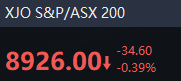 Australia's S&P/ASX 200 Index Closes Down 0.4% at 8,926 Points