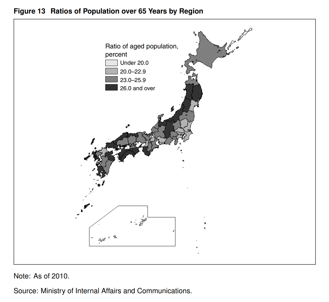 到目前爲止,我的分析集中在人口結構變化對日本整體宏觀經濟表現的影響上。實際上,人口老齡化或低出生率等人口結構變化在不同地區的發展並不均衡。