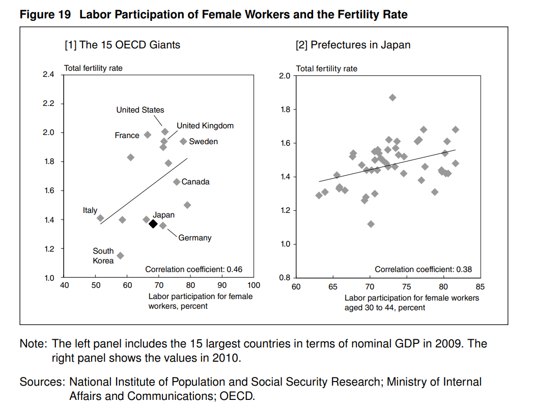 圖19 女性勞動參與率與生育率成正相關