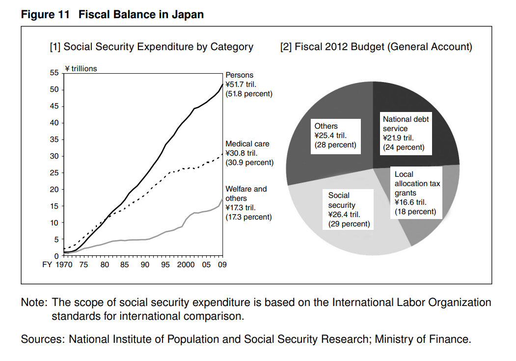 右:2012年,社會保障佔日本財政支出的29%