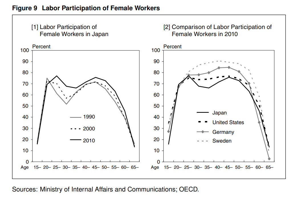 圖9 2010年,日本女性勞動者的參與率比之前更接近其他發達國家