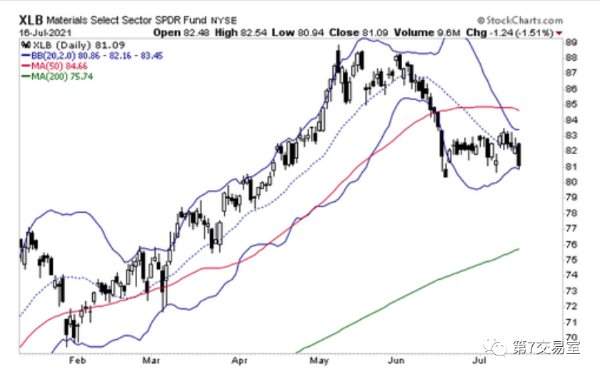 接下來是材料(XLB)。這些公司涉及生產混凝土、銅、鋼等產品。如果美國處於經濟擴張期間,這些公司將收到更多訂單,
