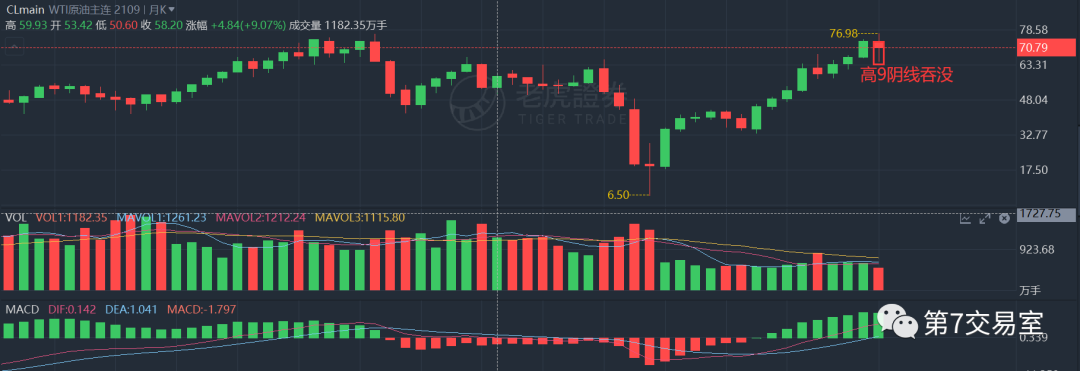 但7%的回落遠不足以消耗原油長期積累的多頭動力,我們認爲,起碼要在原油的月線上形成一根大陰線,成爲一個九轉下跌的形態,才足以把預期給徹底扭轉過來。