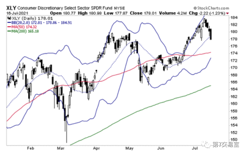 非必需消費品 (XLY)。消費的貢獻佔GDP超過5成,但結果仍然很糟糕。是大家在擔心新型病毒的影響麼?