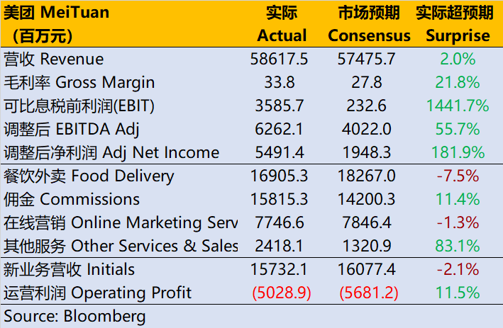 Once again, double beat on revenue and profit, with profits significantly surpassing predictions as part of the expected post-pandemic recovery. As Meituan's performance often exceeds expectations, we are paying attention to two core areas: the recovery of offline-to-online and travel businesses and the reduction in losses for new businesses. The significant increase in profits this quarter is largely due to improvements in these two areas - core business has improved through a revival of high-profit margin operations while new business has improved by reducing costs and increasing efficiency. These factors have positively impacted long-term valuation levels. In terms of secondary markets, Tencent's dividend impact is nearing its end; therefore, Meituan is highly likely to become a leading stock driving economic recovery.