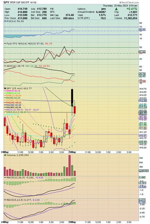 Now hitting the 400 SMA @ 412.86 >> this is a major support level >> After filling the Gap between yesterday and today the 400 SMA needs to hold >>