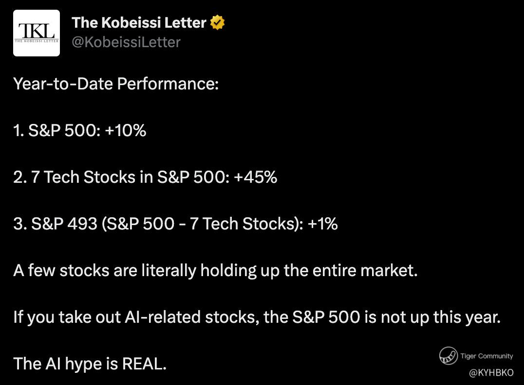 The chart below really displays how important tech stocks have become. The S&P 500 has substantial exposure to the AI hype.