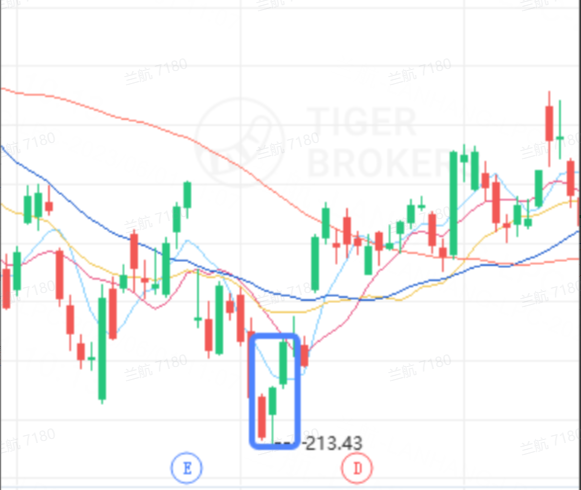 2.On December 24, 2018, after a series of declines, Amazon's stock price formed a Morning Star pattern (at the bottom of the range), indicating that the short-term selling had weakened, and the stock price might reverse. Amazon's stock price rebounded from the bottom in the following period.