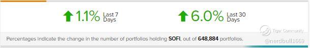 SOFI investors have very positive sentiment on this stock, they have been increasing their portfolio of SOFI shares over the last 7 days and last 30 days.