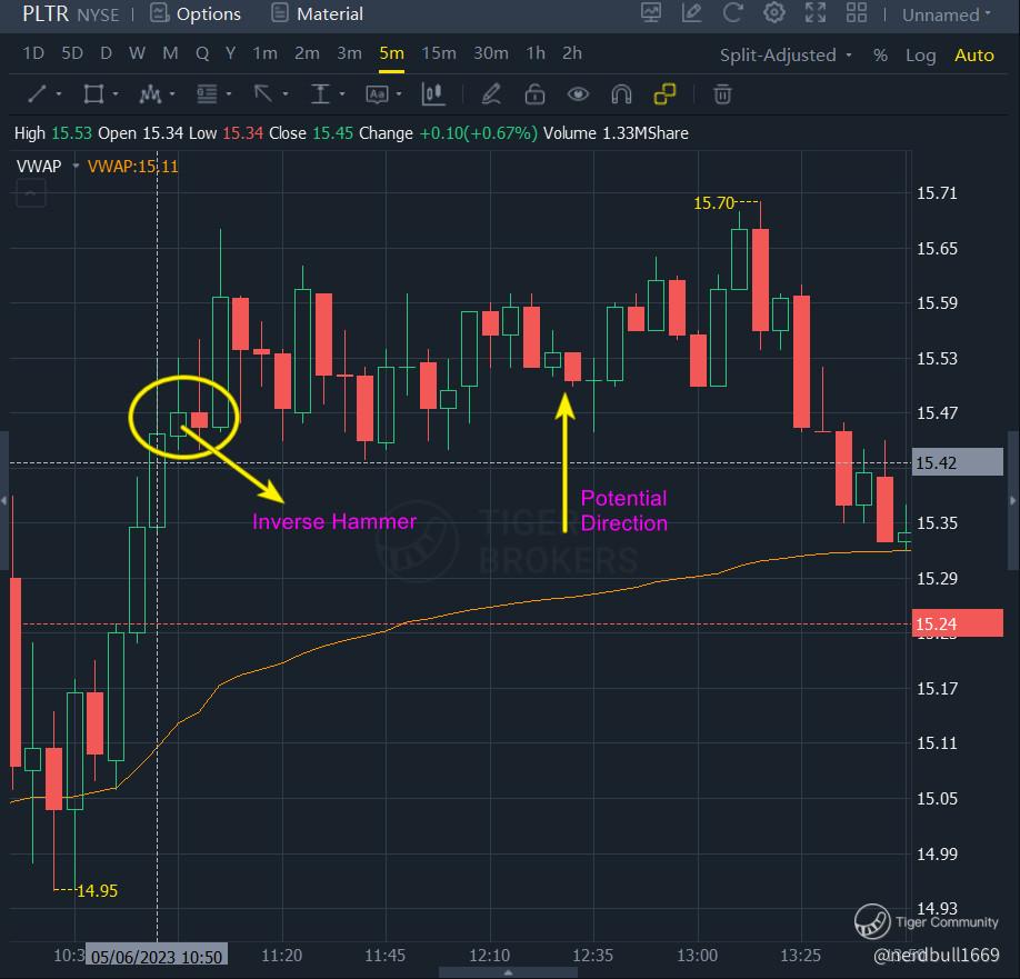 Shortly after 10.50am(EST) we can see a inverse hammer formed, this show that Buyer is in control because there is a new contract deal announced by Palantir.