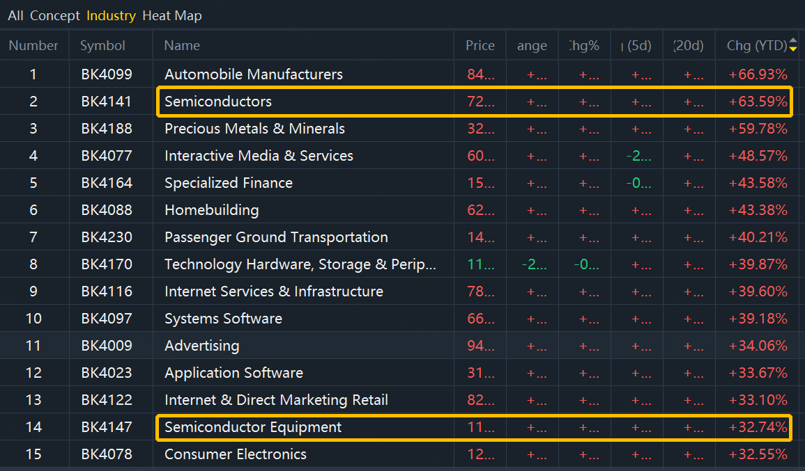 Semiconductor technology and Equipment stocks have been the second-highest industry by return in 2023.