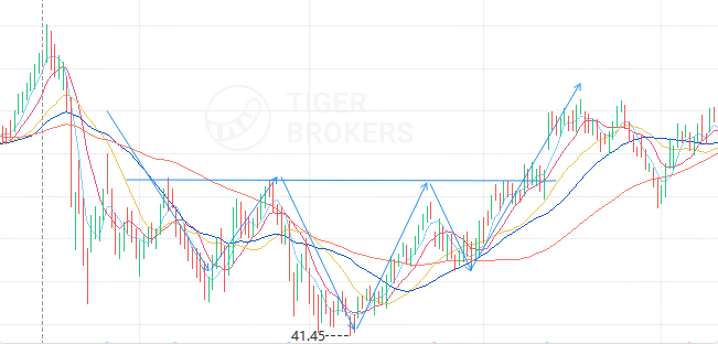 There will be three valleys on the chart, with the middle valley lower and the valleys on both sides relatively higher. The middle valley is called the head, and the higher valleys on both sides are called the shoulders.