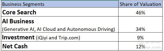 The remaining third of Baidu’s valuation comes from its Artificial Intelligence-related business (“AI business”).