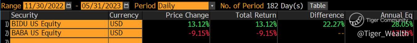 The market has recognised this. Since November last year (when OpenAI released ChatGPT 3.5), Baidu has outperformed Alibaba by 22.3% within half a year. Hence, I believe that Baidu could be bigger than Alibaba in the future if it executes AI ambition well.