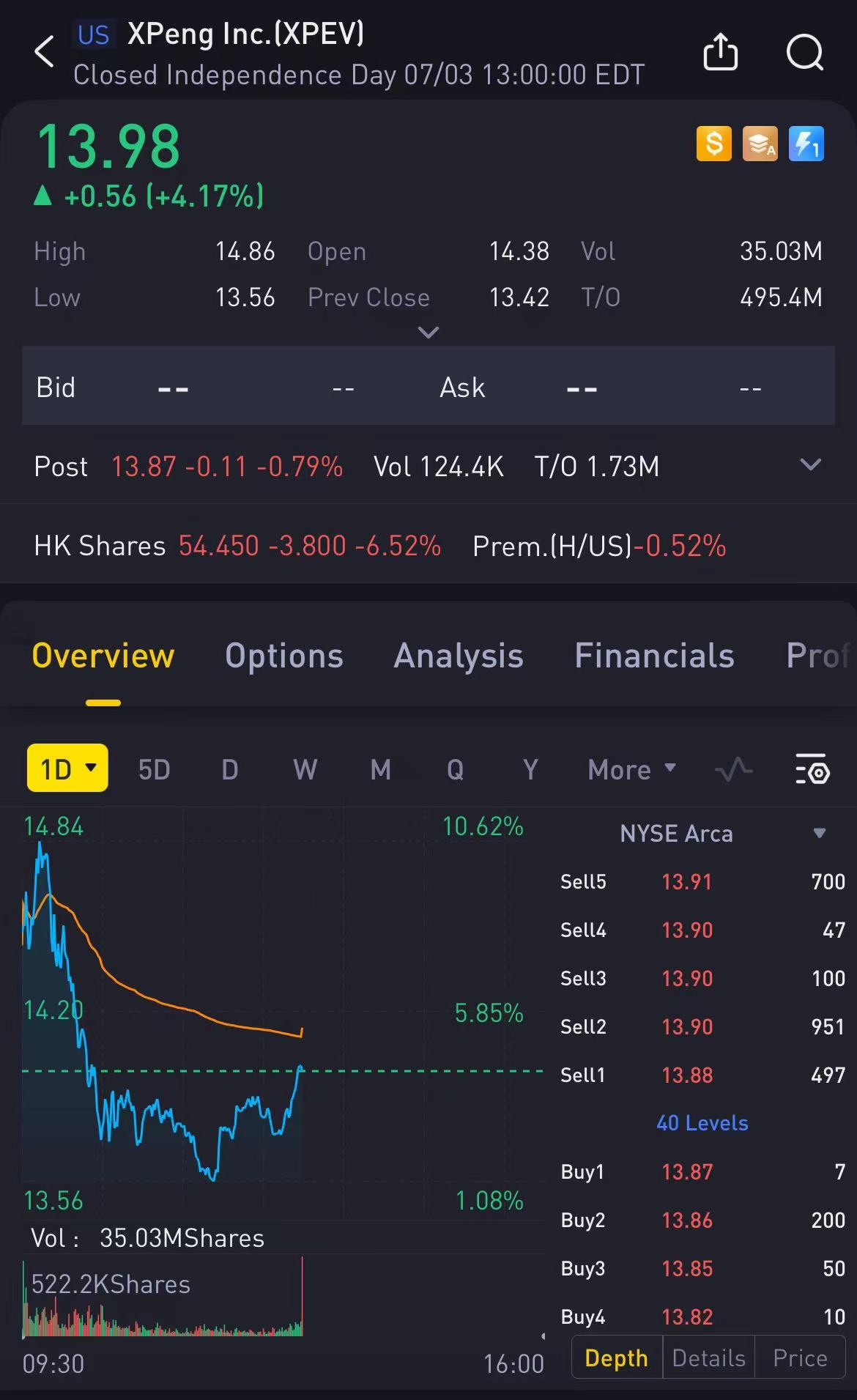 After the appearance of this big order, XPEV's stock price turned to a high opening trend: