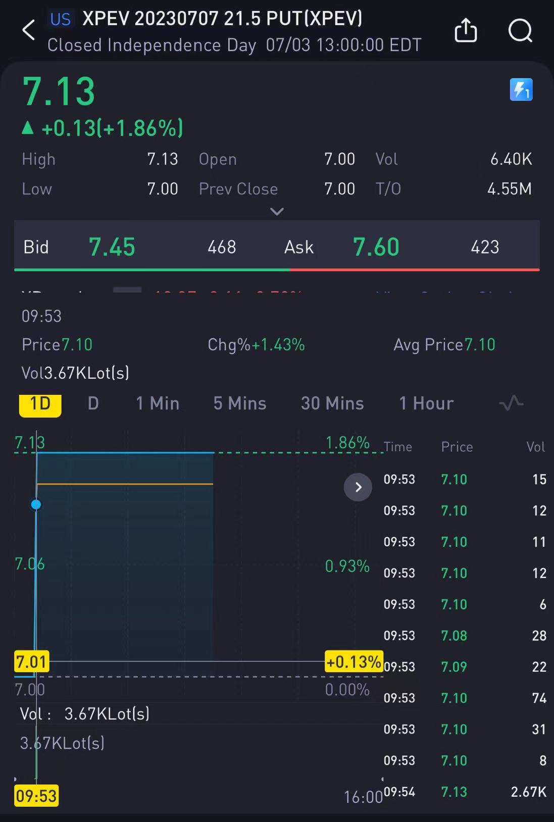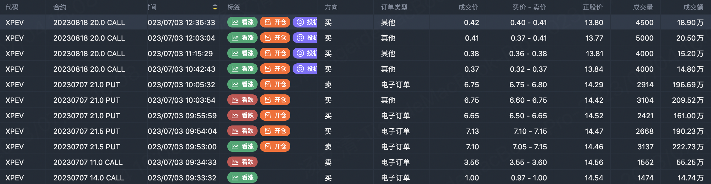 However, 20 minutes after the opening, XPEV's option move appeared in the put order: