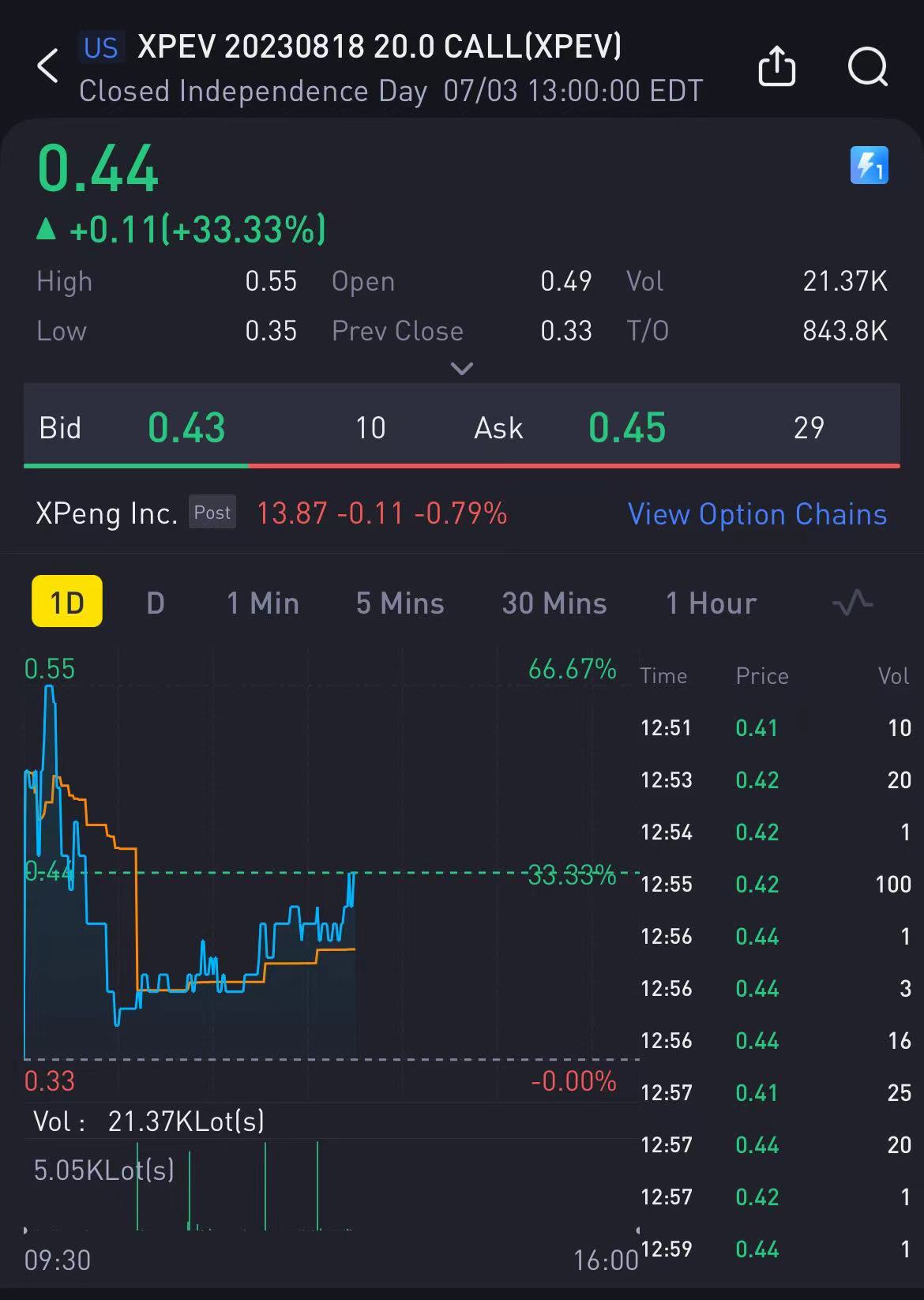 Choose in-the-money options carefully when shorting, and boldly choose deep out-of-the-money options when long. Is it the same wave of people trading? Judging from the cost of calling a large order, there are both possibilities. While put isn't making a lot of money right now, and it looks like it's still down on Wednesday, call costs are low enough. If XPEV's stock price can really hit 20, who cares if the option is 20 cents to buy or 40 cents to buy?