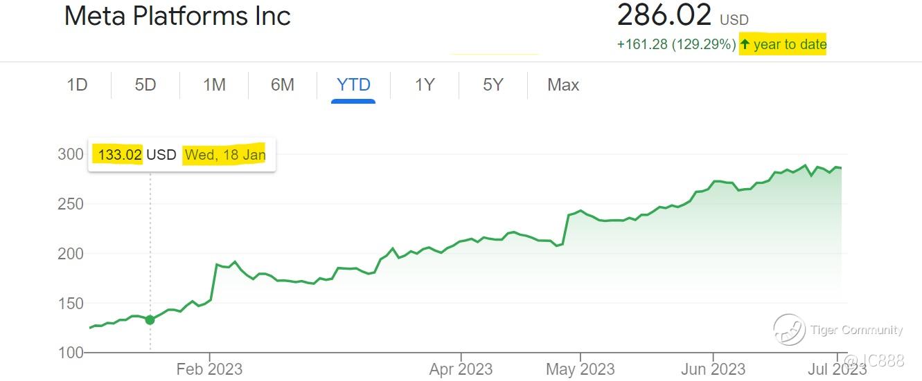For H1 2023, Meta stock price has gained a whooping +129.29%.