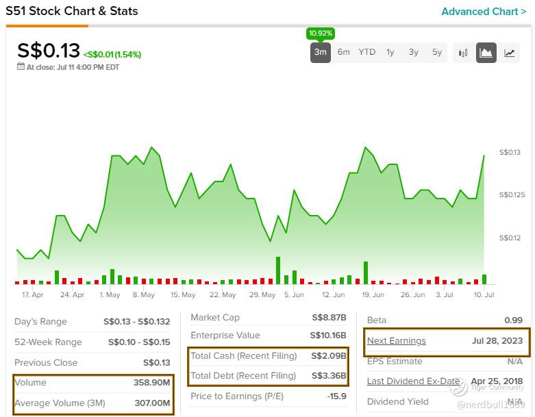 If we look at the FA for S51, it has a good growth of 10.92% over 3 months, but if we look closely at the total debt and total cash, it has more debt, this would be an alarm bell to consider.