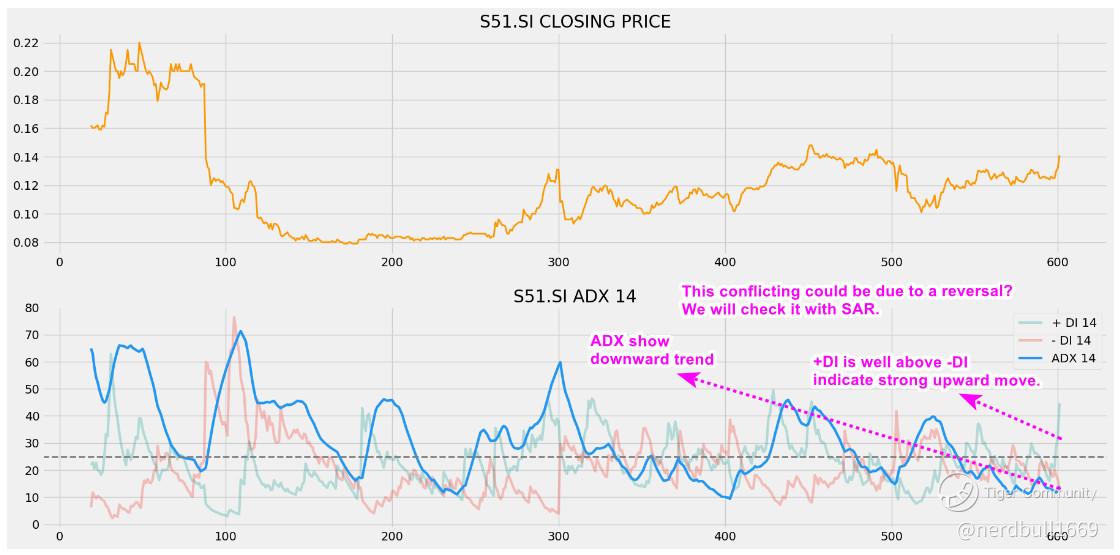 ADX actually show that S51 is in a downward trend, but +Di is well above -DI which suggest that it has a strong upward trend.