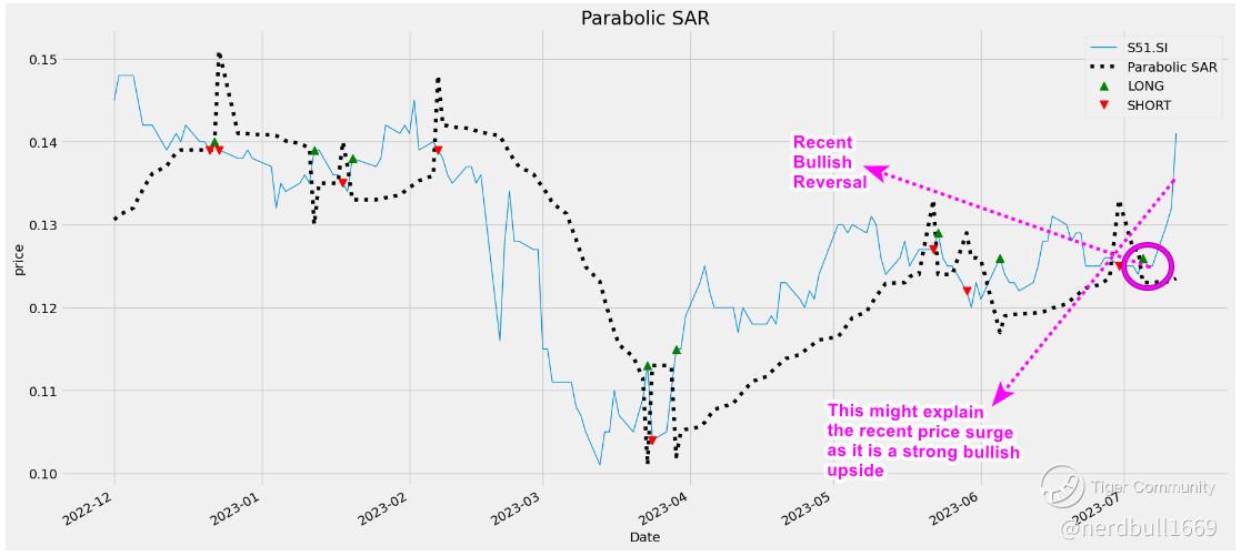 From the chart below, SAR has shown that S51 has recently undergo a bullish reversal in early July, this might explain why we can see that S51 have been trending up this week.