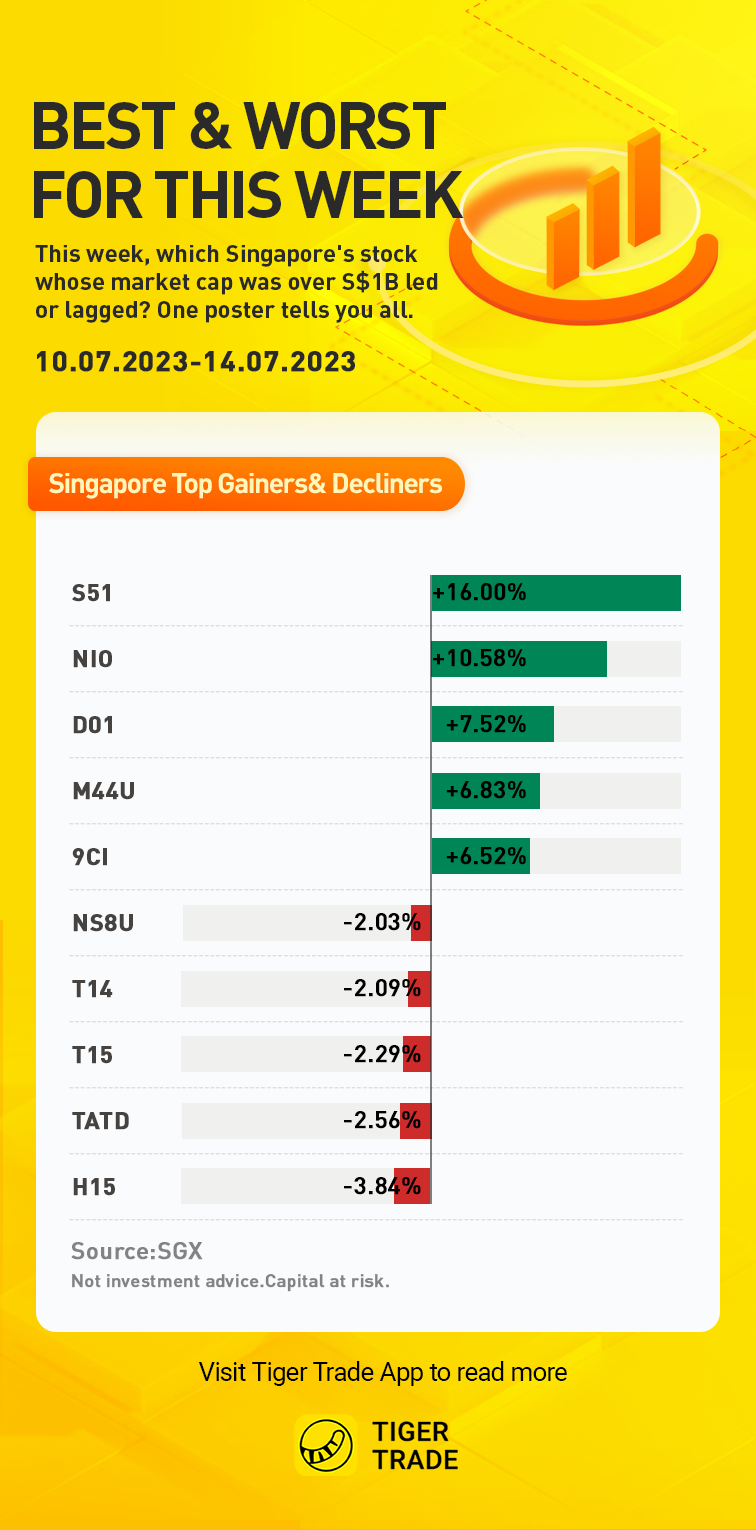 During the last 5 trading days, $Seatrium(S51.SI)$, $NIO Inc.(NIO.SI)$, $DFIRG USD(D01.SI)$, $MAPLETREE LOGISTICS TRUST(M44U.SI)$, and $CapitaLandInves(9CI.SI)$ are the top 5 Weekly gainers, up 16.00%, 10.58%, 7.52%, 6.83% and 6.52% respectively.