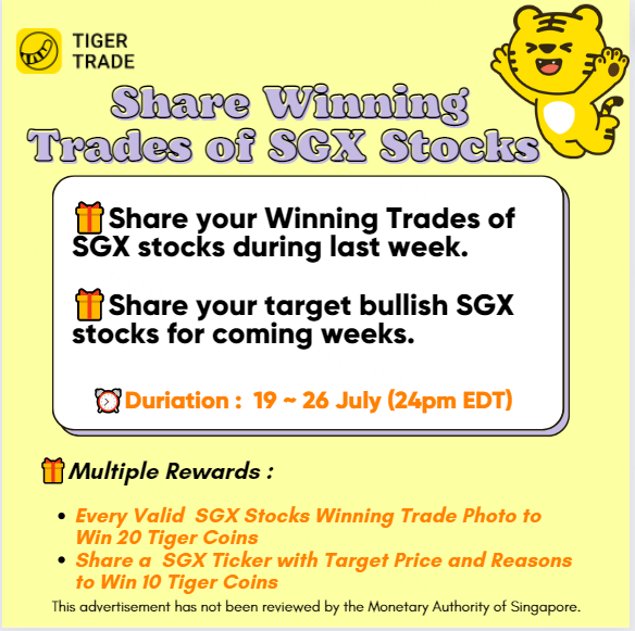 Welcome Tigers to review the top winners of market and check the earnings calendar to share your Winning Trades of SGX stocks to win Tiger Coins.