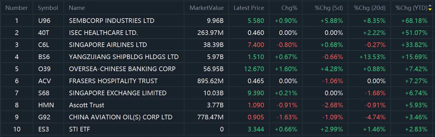 As of July 19th, 2023, $Straits Times Index(STI.SI)$ closed at , gives a 0.74% YTD in 2023. Below are some data reflects the past weekโs SGX market.