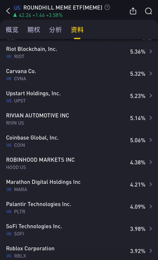 $ROUNDHILL MEME ETF(MEME)$ , the first ETF designed to track the performance of meme stocks, is up 67% this year.