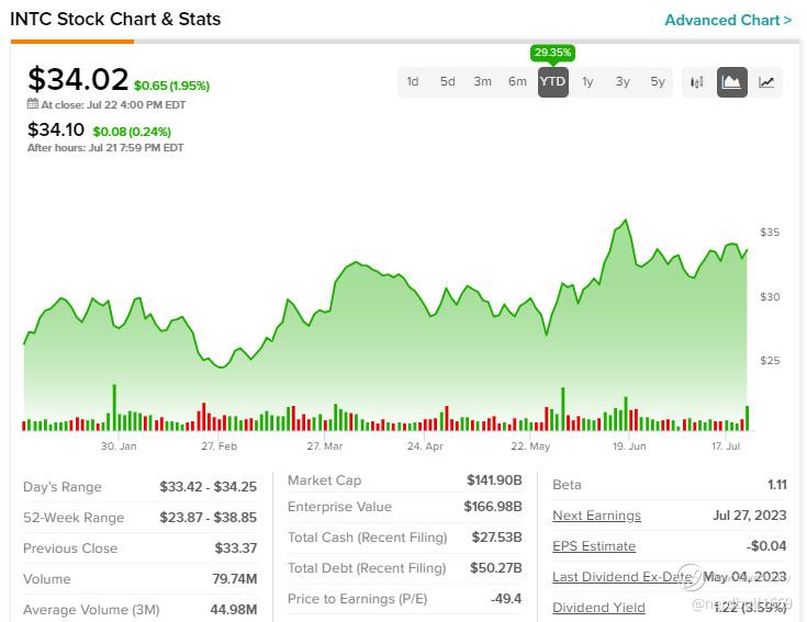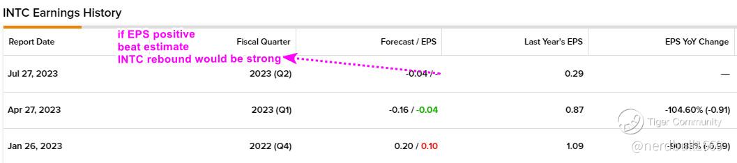 $Intel(INTC)$ will be releasing their earnings report on 07/27/2023 after market close.