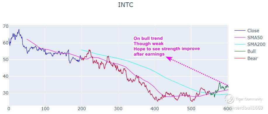 Intel have been on bull trend but it is rather weak. But something to take note is Intel could have tendency to go into the bear.