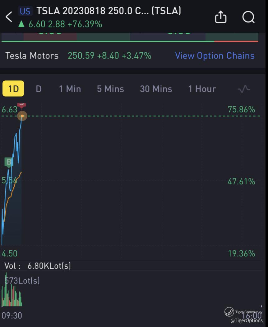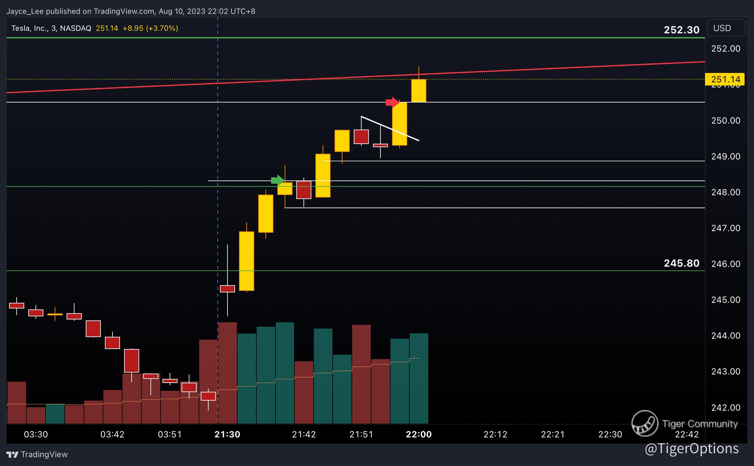 $TSLA 20230818 250.0 CALL$ Got in at 10min opening range breakout and slowly rided the wave up. Got out when my target is reached. It continued higher, but I'm grateful for what I got. Remember to always be cautious and secure your profits.