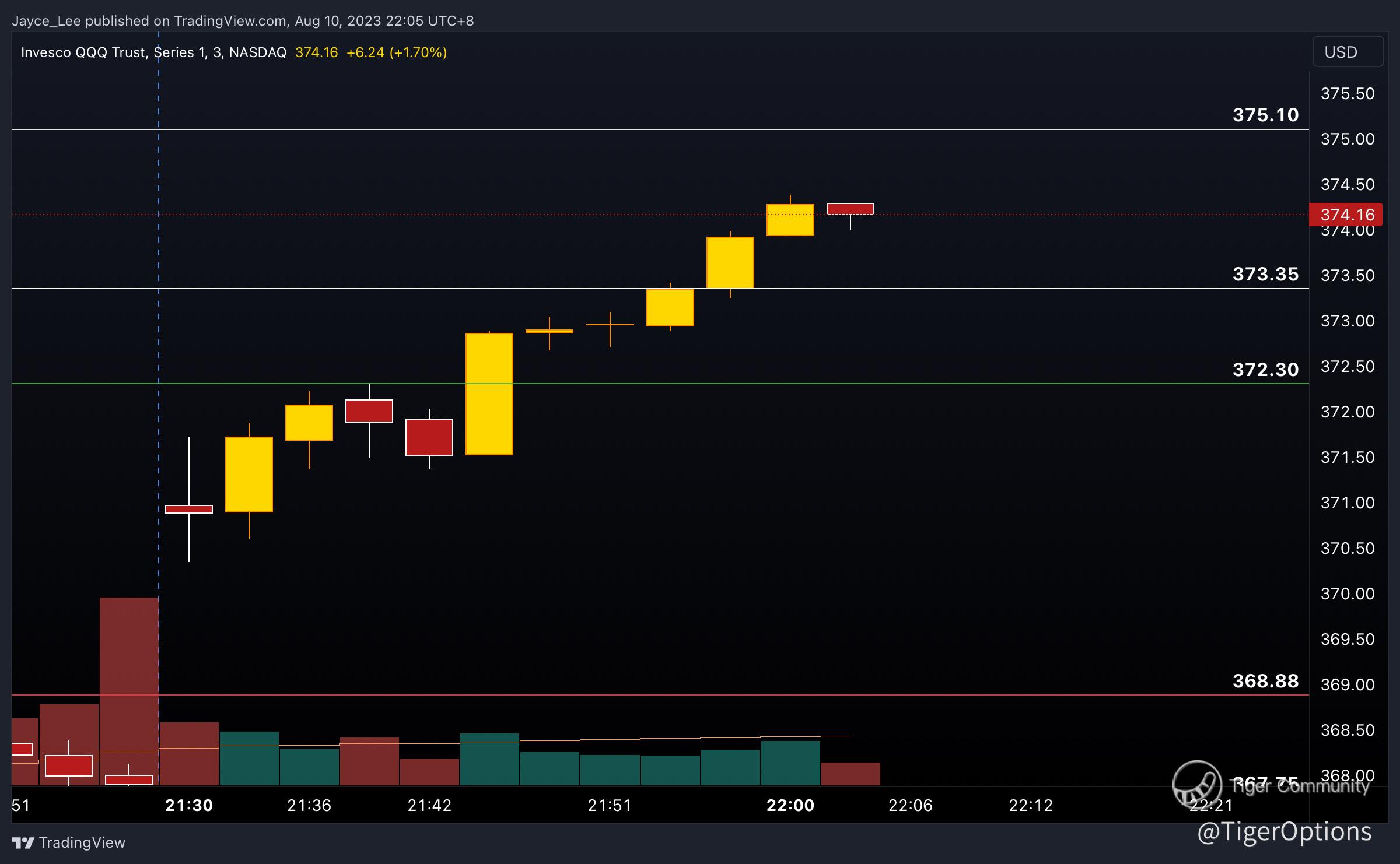 Strong momentum today as the market opens after inflation reading. $QQQ in target zone now.