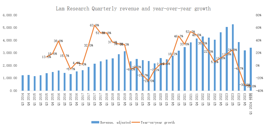 From the perspective of revenue over the years, Lam Research shows a cyclical fluctuating growth characteristic, which is consistent with the characteristics of the semiconductor industry: