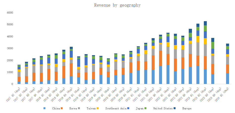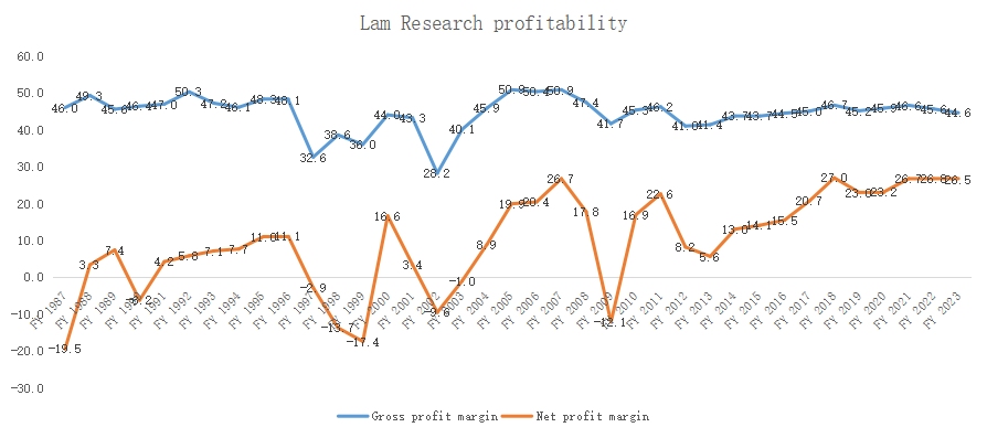 In terms of gross profit margin, Lam Research was only 44.6% in fiscal year 2023, no significant increase over the last century, so it is considered that the decline in expense rate has improved profitability.