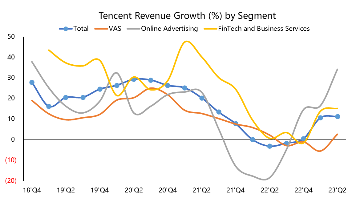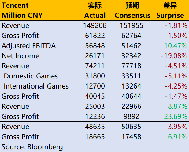 Since Q1, Tencent's gaming business has been growing at a double-digit pace, causing it to surpass expectations. Consequently, this quarter's gaming business saw a 4-5% discrepancy from market expectations, making it the greatest uncertainty in the entire financial report.