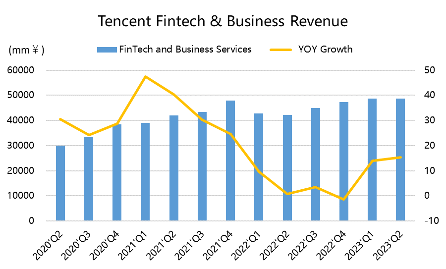Commercial payment activities have grown year-on-year since Q1 due to the low base. However, the activity level of offline activities is not as high as expected, as can be seen from macro data released by the National Bureau of Statistics. Therefore, financial technology business maintains growth, but not as expected.
